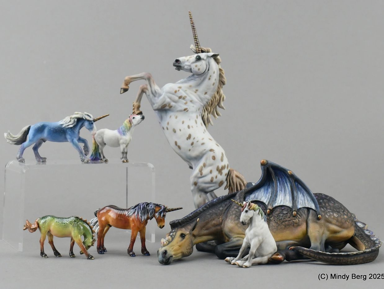 The adorable Kipling dressed up.. or is it a real unicorn? Either way, this pony slays me. Sculpted by Morgen Kilborn, I think he is just a darling unicorn. Softly dappled with a shimmery coat, his bone China soft pastel colors set him off. He gives me cuteness aggression. LOL.